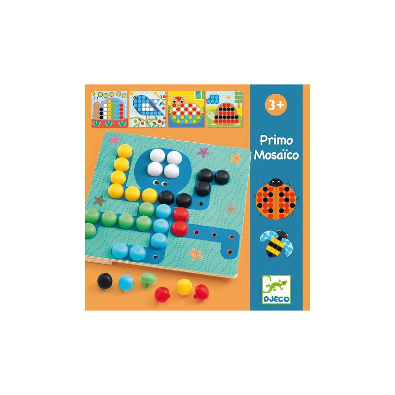 Découvrez le jeu Primo Mosaïco de Djeco, un jeu de mosaïque éducatif pour les enfants dès 3 ans. Votre enfant va devoir placer les picots sur les images, afin de créer les animaux en mosaïque.