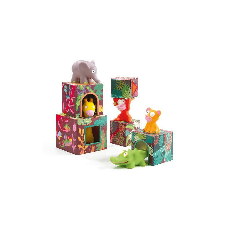 Découvrez le jouet d'éveil Maxi Topanijungle de Djeco, un jeu d'empilage et de construction composé de cubes et des personnages destiné aux enfants dès 18 mois.