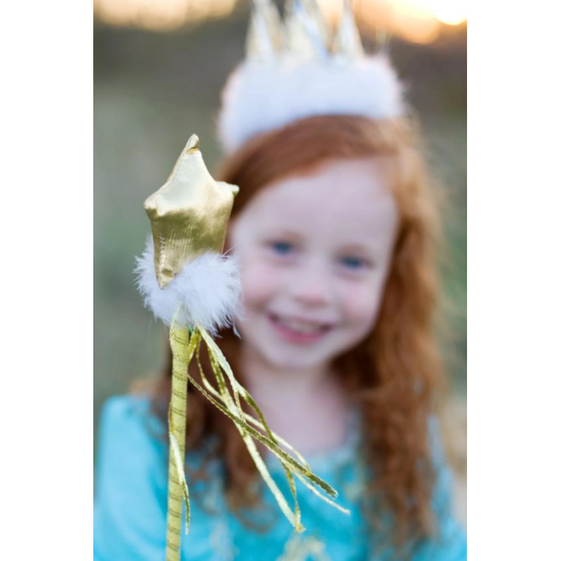 Bordée de rubans métalliques assortis et d’accents en plumes marabout, cette baguette en forme d’étoile est un excellent ajout à tout costume de princesse OU de fée. Vise les étoiles, petit