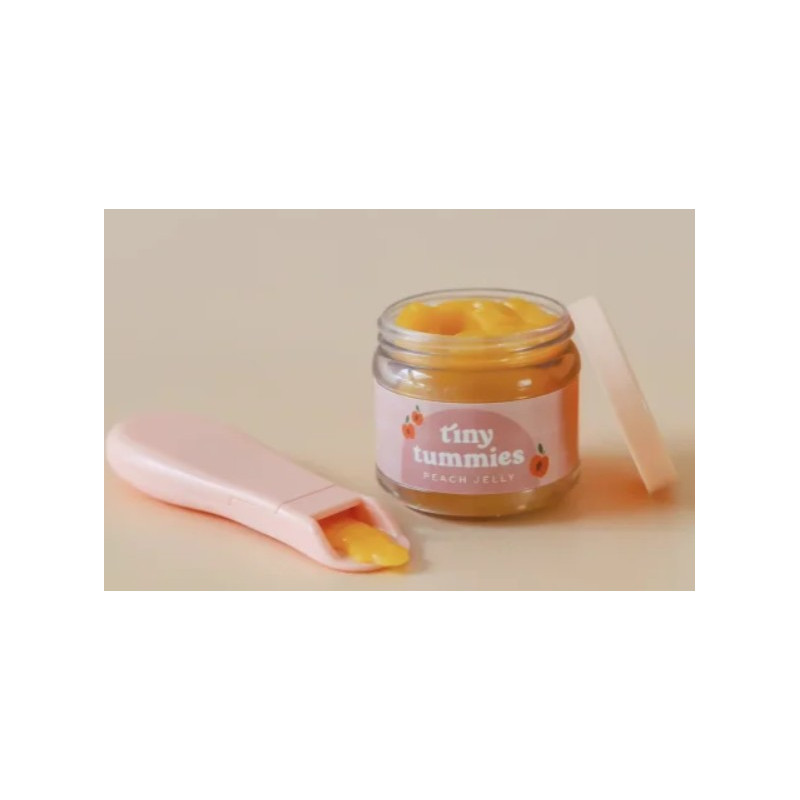 Délicieuse gelée au parfum de pêche de Tiny Harlow, idéale pour le repas de vos poupées ! Avec notre cuillère magique spécialement conçue, il suffit de la plonger dans le pot et de la regarder atterrir dessus. Lorsque vos poupées seront nourries, elles seront surprises de voir la gelée disparaître comme si elles l'avaient entièrement mangée !