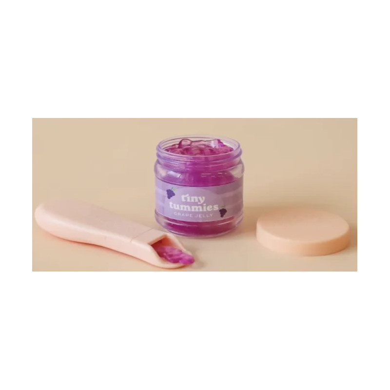Délicieuse gelée au parfum de raisin de Tiny Harlow, idéale pour le repas de vos poupées ! Avec notre cuillère magique spécialement conçue, il suffit de la plonger dans le pot et de la regarder atterrir dessus. Lorsque vos poupées seront nourries, elles seront surprises de voir la gelée disparaître comme si elles l'avaient entièrement mangée !
