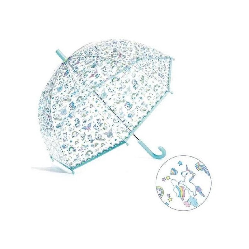 Découvrez le parapluie licornes de Djeco, un magnifique parapluie illustré en plastique transparent pour égayer les jours de pluies. Un parapluie coloré avec des licornes pour mettre de la couleurs les jours de pluie.
