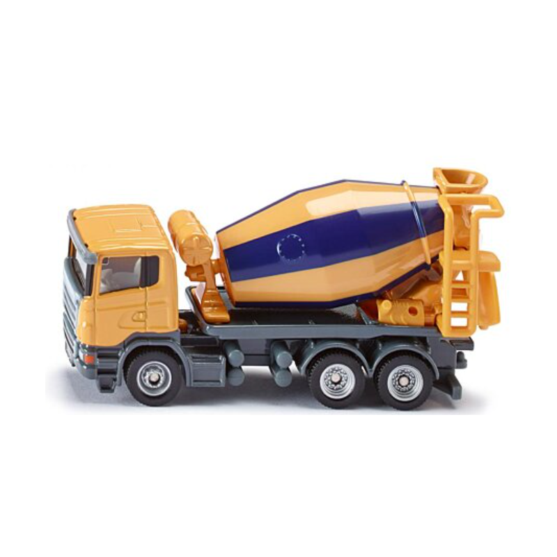 Amener du béton prêt à l'emploi sur le chantier, telle est la mission du camion toupie. Le modèle à l'échelle 1:87 à carrosserie Liebherr sur un châssis à 3 essieux avec cabine de conduite Scania remplit facilement cette mission. La toupie est rotative et porte des bandes caractéristiques. La structure basculante offre une fonction de jeu supplémentaire.