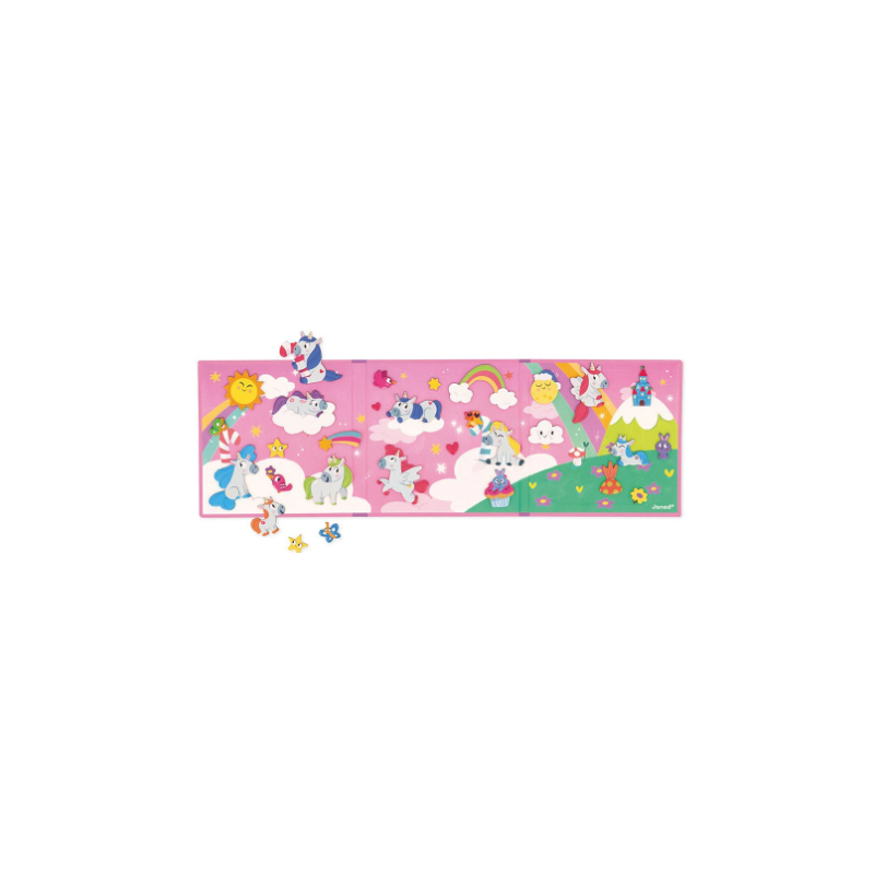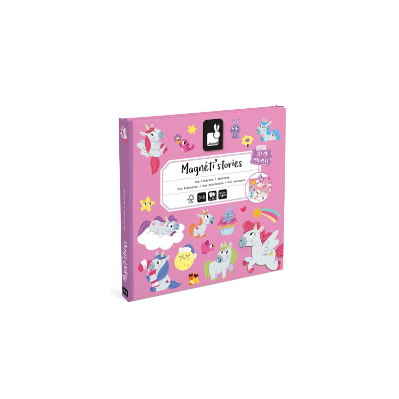 Découvrez le Magnéti'stories Les licornes de Janod, un jeu magnétique dans lequel les enfants dès 3 ans, vont s'amuser à imaginer des scènes grâce à des magnets sur le thème de la licorne.