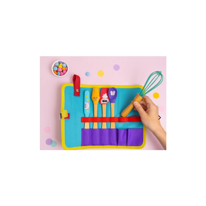 Découvrez le kit de mini-ustensiles de Chefclub Kids, une collection de 5 accessoires de cuisine pour les enfants. Des ustensiles colorés à l'effigie des personnages Chefclub adaptés à la taille des mains des enfants.