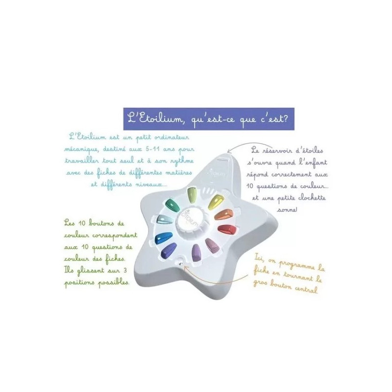 Découvrez L'Étoilium le réservoir d'étoiles, un ordinateur mécanique pédagogique qui permet aux enfants de 5 à 11 ans de travailler en autonomie, de réviser et de progresser à leur rythme grâce à des fiches d'exercices ludiques. Un jeu autocorrectif simple d'utilisation, respectueux de l'environnement et fabriqué en France.