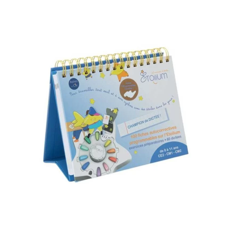 Découvrez le chevalet Champions de dictée de l'Étoilium le réservoir d'étoiles, un ensemble de fiches d’exercices illustrées pour jouer avec l'Étoilium, un ordinateur mécanique pédagogique innovant.
