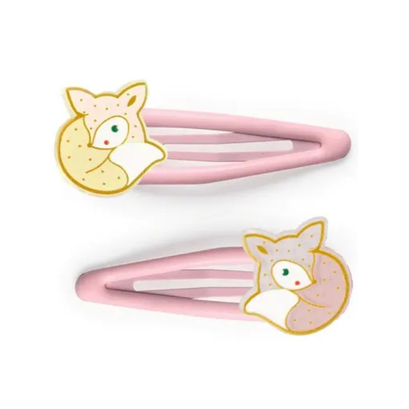Le set comprend 2 barrettes-clip en métal avec 2 éléments renards en acrylique.