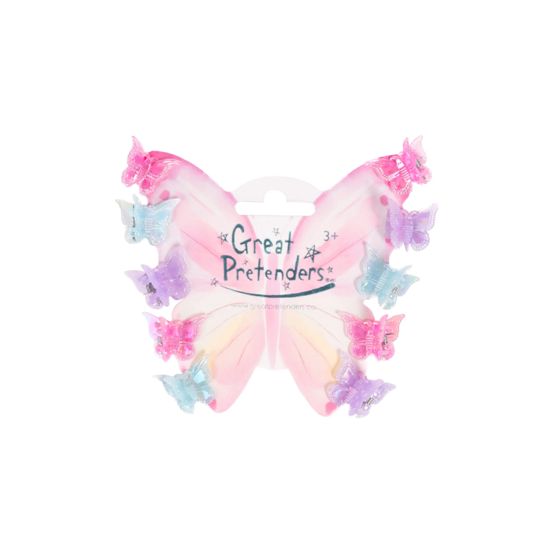 Les mini pinces Fancy Flutter de Great Pretenders sont disponibles en un ensemble de 10 adorables petites pinces papillon, assorties dans des tons pastel doux de violet, rose et bleu. Parfaites pour les petits doigts et l’imagination, ces mini-clips sont idéaux pour le quotidien, les aventures de déguisement ou pour ajouter une touche de couleur à n’importe quel look.
