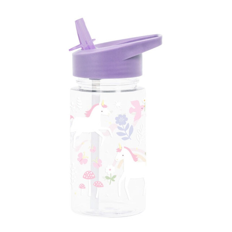 Découvrez la gourde Licorne de A Little Lovely Company, une gourde à bec transparente très pratique qui servira pour l'école, les sorties scolaires ou les activités sportives.