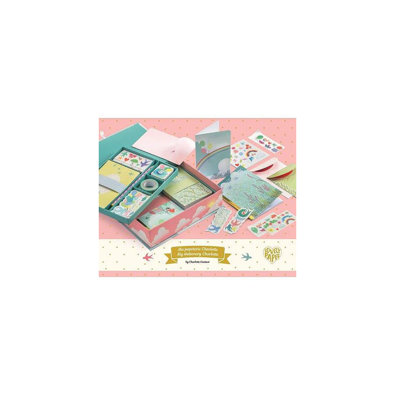Découvrez le coffret de papeterie Charlotte de Lovely Paper by Djeco, un coffret cadeau remplie de papeterie pour écrire, dessiner ou créer à partir de 6 ans.