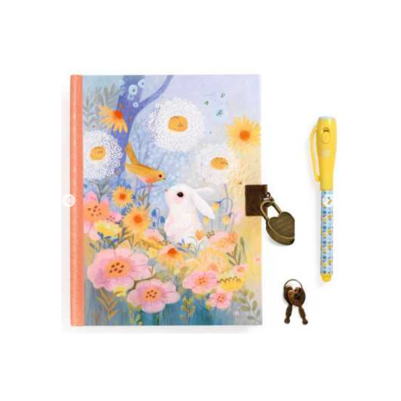 Découvrez le carnet secret et son feutre magique Kendra de Lovely Paper by Djeco, un journal intime pour conserver ses plus grands secrets écrits avec un feutre à encre invisible. Révélez vos dessins et vos secrets grâce à sa lampe à UV qui se trouve dans le capuchon.