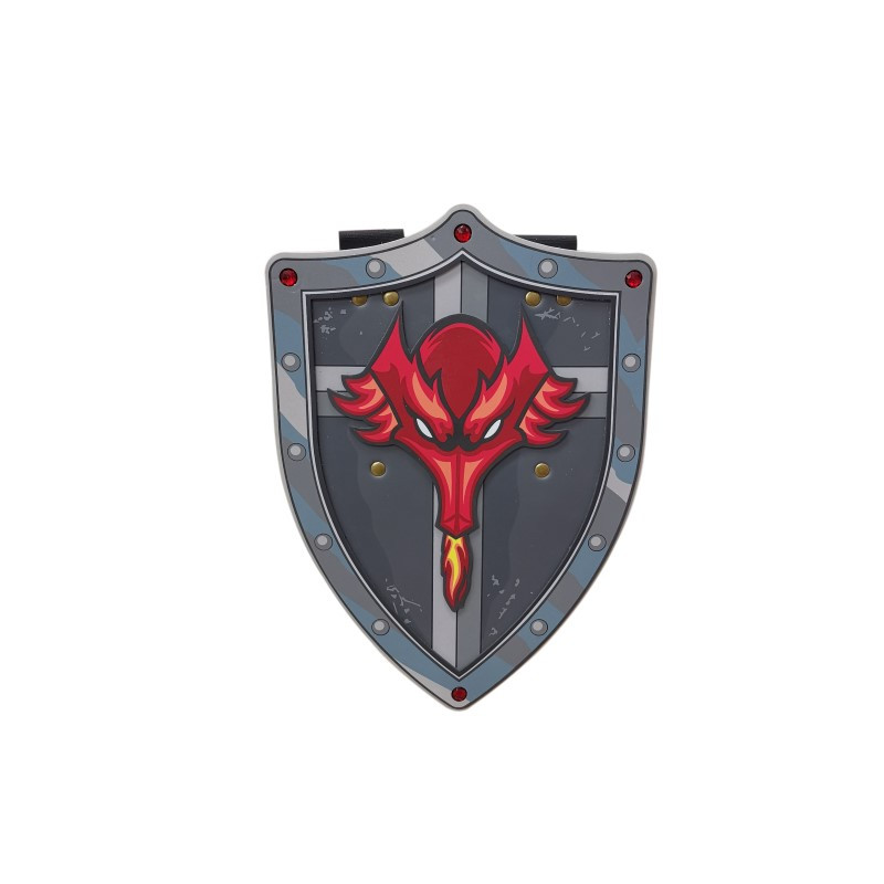 Découvrez le bouclier dragon de Great Pretenders, un superbe bouclier en mousse que votre enfant va adorer. Un accessoire de jeu en mousse avec des diamants strass sur le thème des chevaliers.