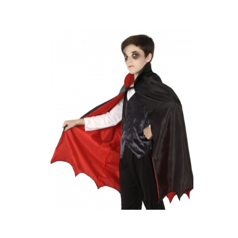 Voici la Cape vampire 66 cm de Vegaoopro, entièrement noire, elle possède une doublure rouge et un col large qui offre un port de tête majestueux ! Une cape des plus sombres pour un déguisement de vampire plus vrai que nature le soir d’Halloween !