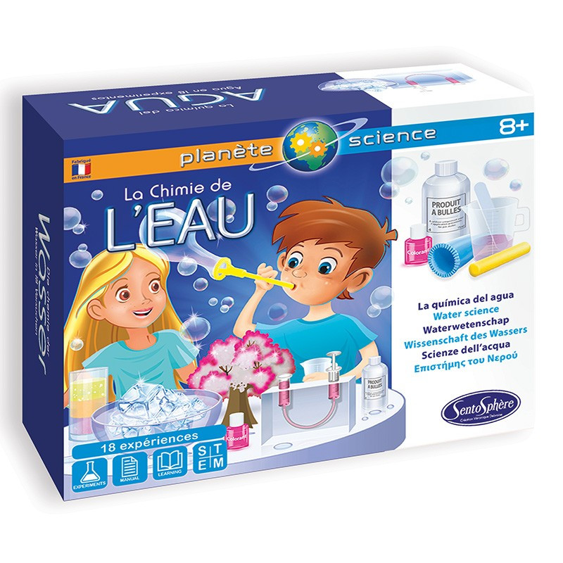 Découvrez le coffret d'expériences la chimie de l'eau de Sentosphère, un kit scientifique à partir de 8 ans avec 16 expériences passionnantes pour s’amuser à comprendre la chimie et la physique de l’élément le plus essentielle à la vie : l’eau.