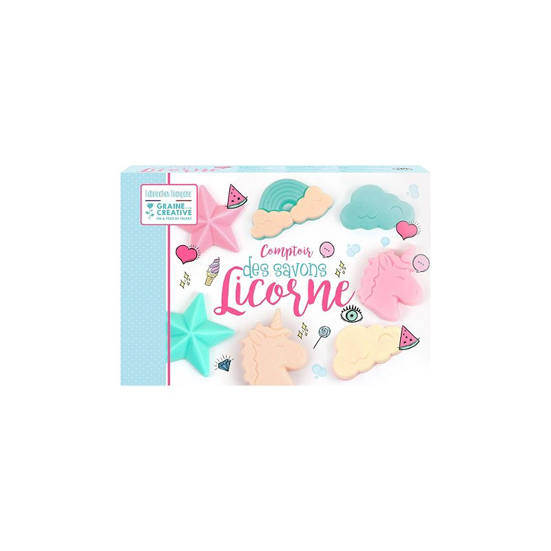 Découvrez le Coffret Comptoir des savons licorne de Graine créative, un coffret créatif pour les enfants à partir de 8 ans pour créer des savons sur le thème des licornes. Un coffret fabriqué en France.