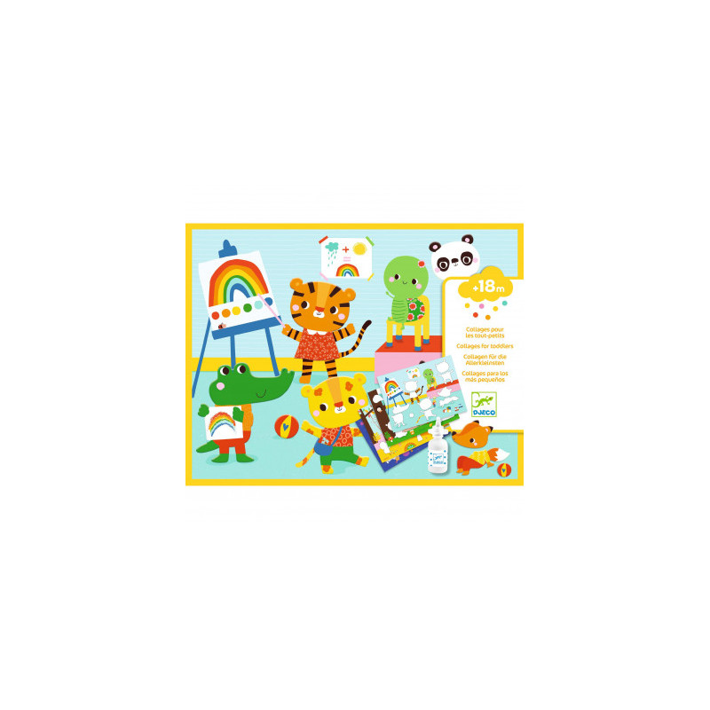Une activité de collage dès 18 mois. Grosses pièces prédécoupées en carton épais : faciles à détacher pour les petites mains. De la colle adaptée pour les tout-petits dès 18 mois. Développe la dextérité. Apprentissage des formes. Un livret explicatif en couleurs et uniquement en images.