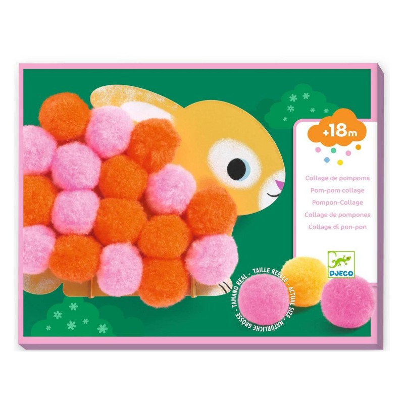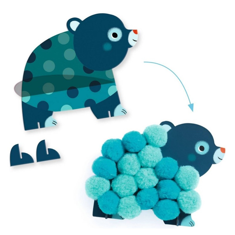 Découvrez Collage de pompons Animaux et ronds pompons de Djeco, un coffret créatif conçu pour accompagner les enfants dès 18 mois dans leurs premières activités manuelles tout en douceur.