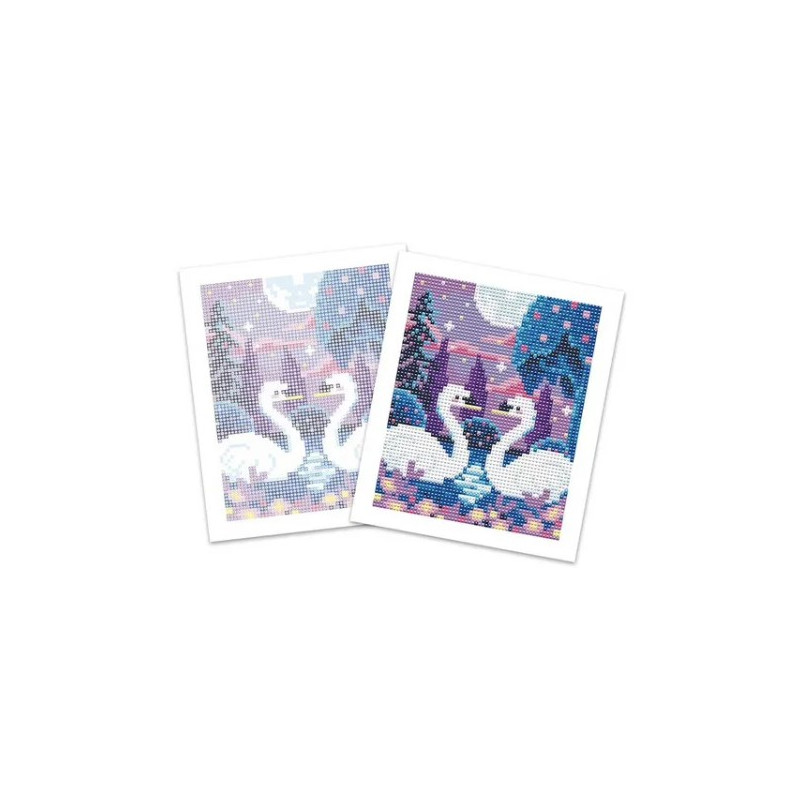 Qu'ils sont beaux ces deux cygnes au clair de lune ! Délicatesse et précision sont au rendez-vous avec ce kit créatif de peinture diamant, idéal pour les enfants dès 8 ans !