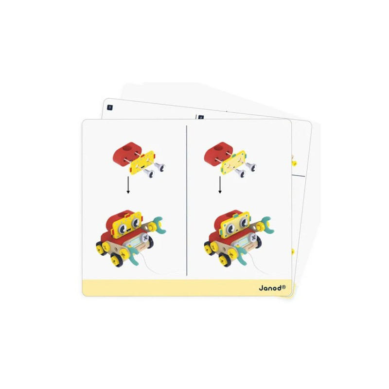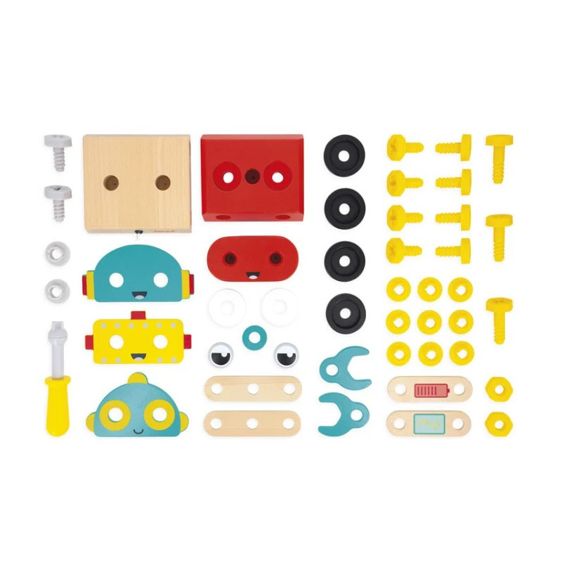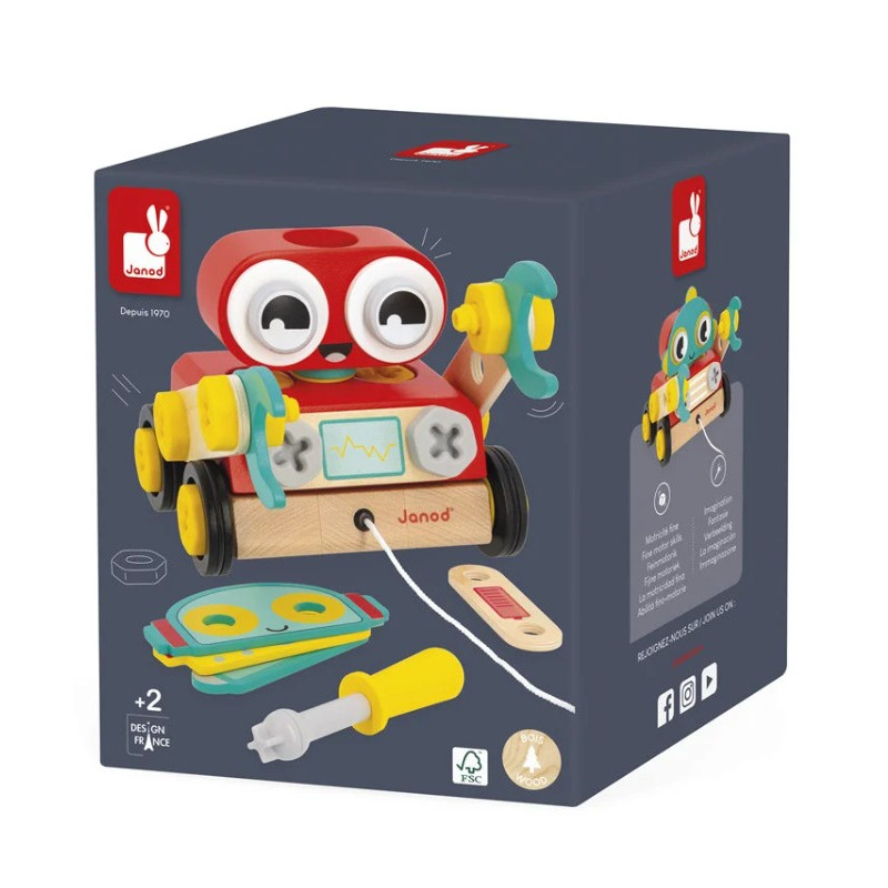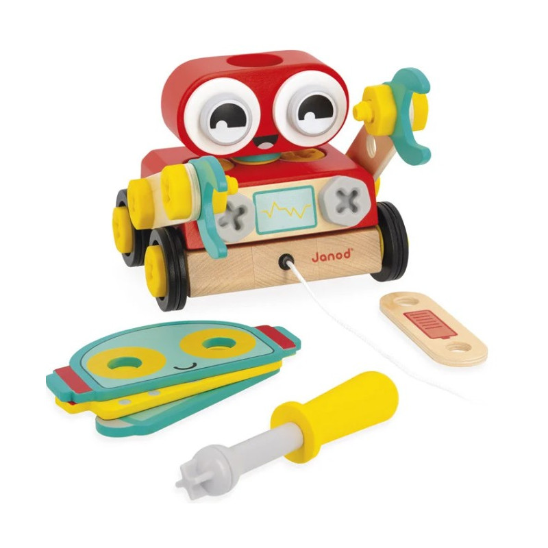 Découvrez le Robot de la collection Brico'Kids de Janod, un jouet en bois de construction destiné aux enfants dès 2 ans.