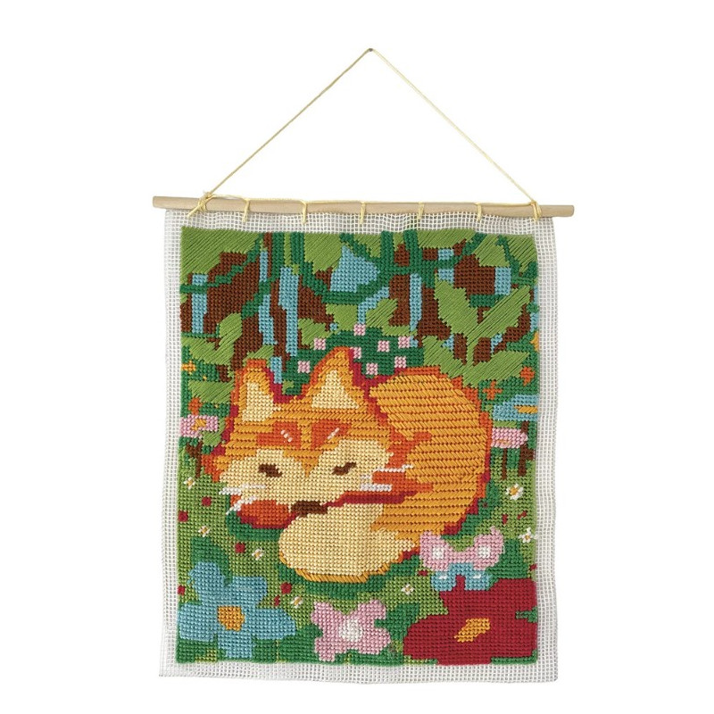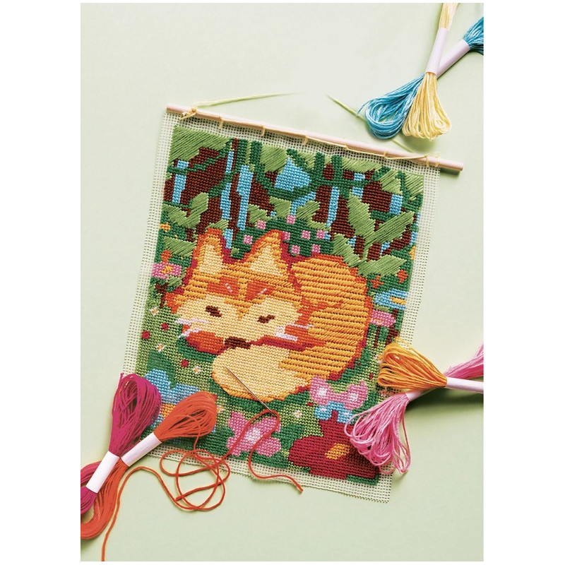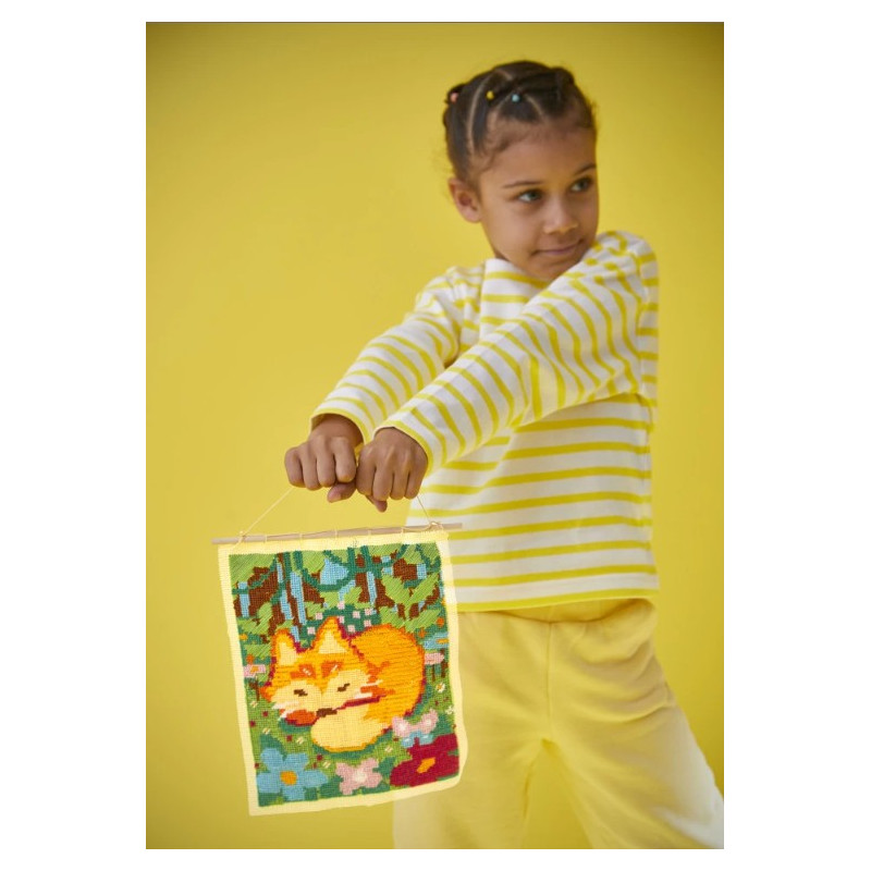 Un livret avec des instructions est inclus, pour réaliser son oeuvre pas à pas. Avec ce canevas, les enfants deviennent de vrais artistes : un fil vert par-ci, un fil brun par-là… et doucement, les feuilles de la forêt prennent forme autour du petit renard endormi.