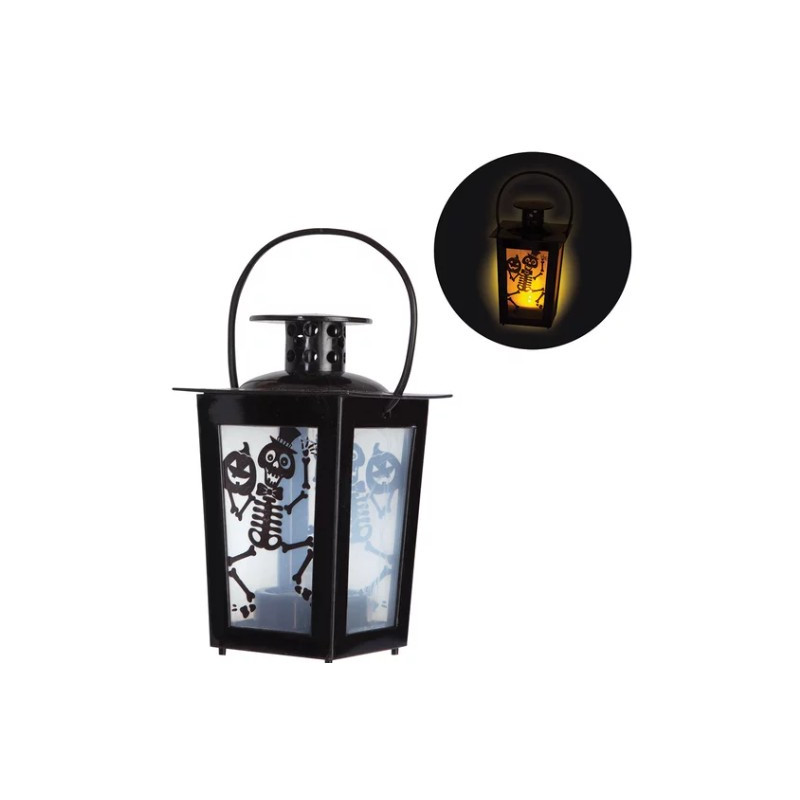 Faites sensation le soir d'Halloween avec cette lanterne lumineuse de Rubie's ! Lorsqu'elle s'allume, l'étrange squelette sur les côtés de la lanterne semble se mettre à danser...
