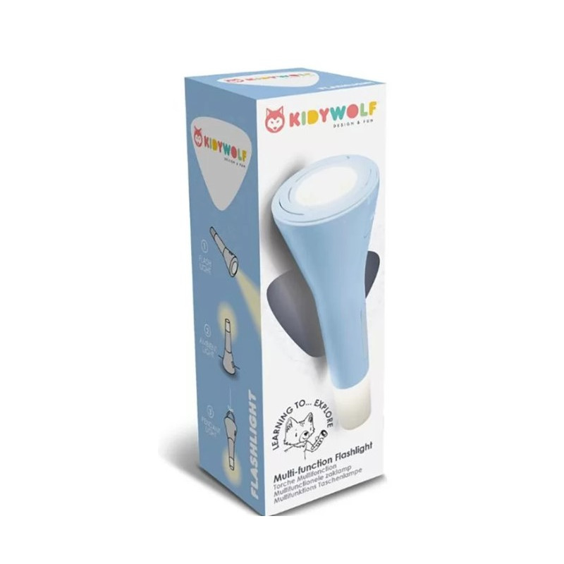 Avec Flashlight, la lampe de poche bleu de Kidywolf, les enfants découvrent le monde nocturne qui les entoure. C'est aussi une veilleuse.