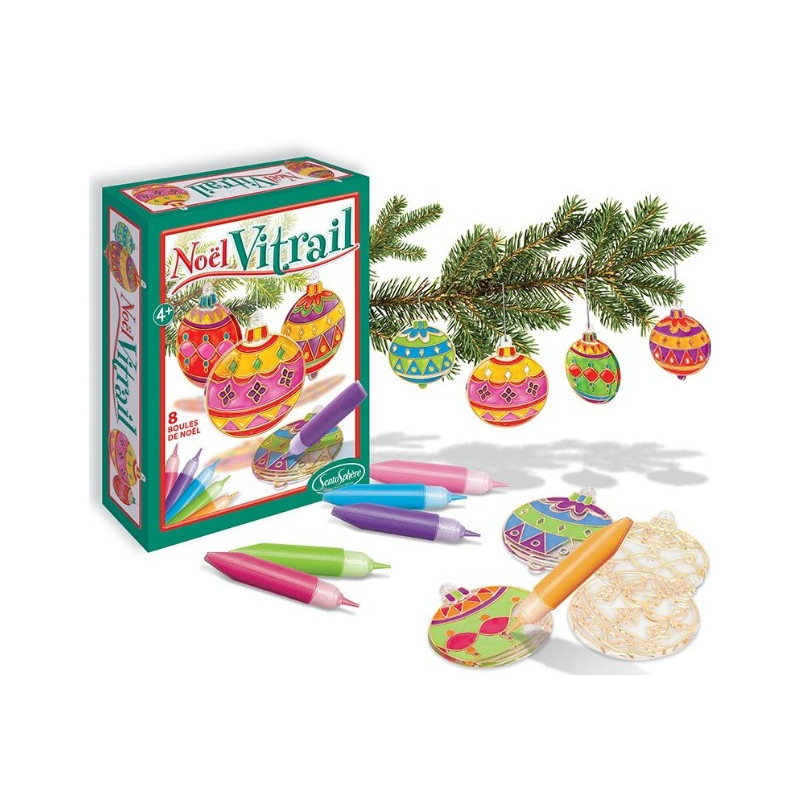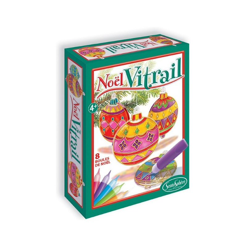 Profitez de ce mini coffret Noël Vitrail de Sentosphère pour décorer votre arbre de Noel et préparer au mieux les fêtes de fin d’année ! 8 boules plates sont fournies avec des peintures vitrail translucides pour les transformer en décorations, qui deviennent multicolores grâce aux peintures vitrail.
