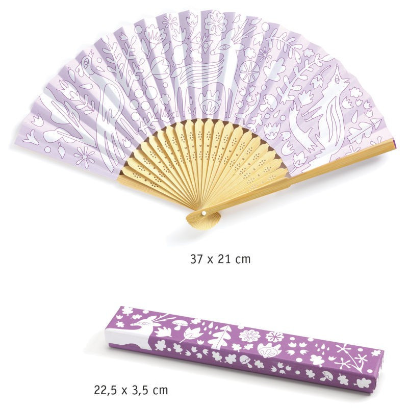Découvrez l'éventail à colorier belle des bois de la collection Do It Yourself de Djeco, un coffret créatif pour les enfants à partir de 6 ans qui vont colorier un joli éventail et son étui de rangement.