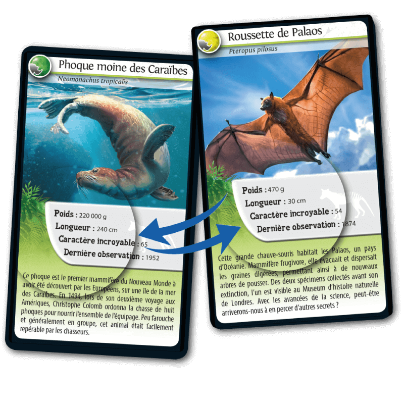 Découvrez leurs caractéristiques, puis pariez sur les points forts de vos animaux pour collecter toutes les cartes du jeu et remporter la partie.