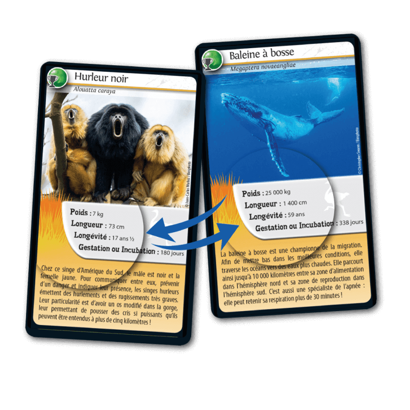 Découvrez les espèces à préserver, puis pariez sur les points forts de vos animaux pour collecter toutes les cartes du jeu et remporter la partie.