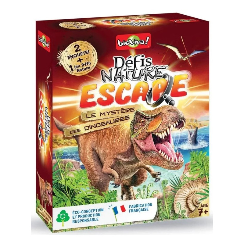 Le jeu Défis Nature Escape Le mystère des dinosaures de Bioviva contient 2 enquêtes captivantes à résoudre. Relevez les indices et résolvez des énigmes et autres.
