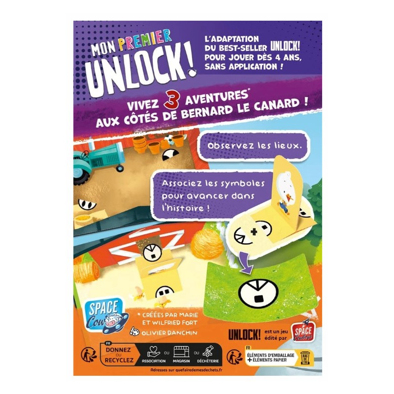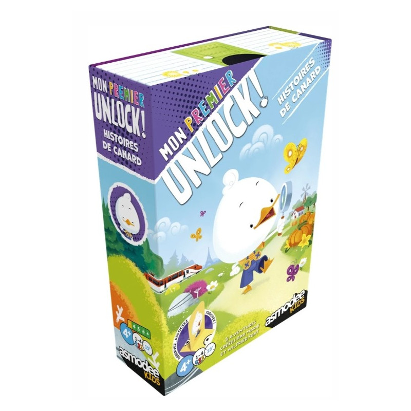 Découvrez le jeu Mon Premier Unlock! : Histoires de Canard de Asmodée un jeu coopératif inspiré des escapes rooms pour jouer de 1 à 4 joueurs à partir de 4 ans pour des aventures de 15 minutes.