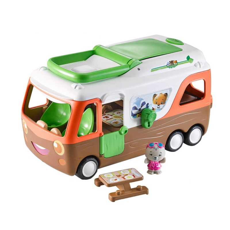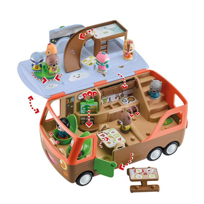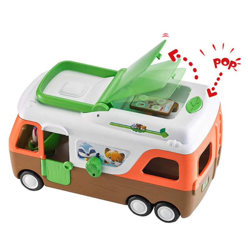 Telle une maison roulante, il y a tout dans le camping-car: le poste de pilotage, une cuisine, un espace repas et une chambre salle de jeu. Avec plus de 8 activités surprises et amusantes, le camping-car est le jouet idéal pour des heures de jeu.