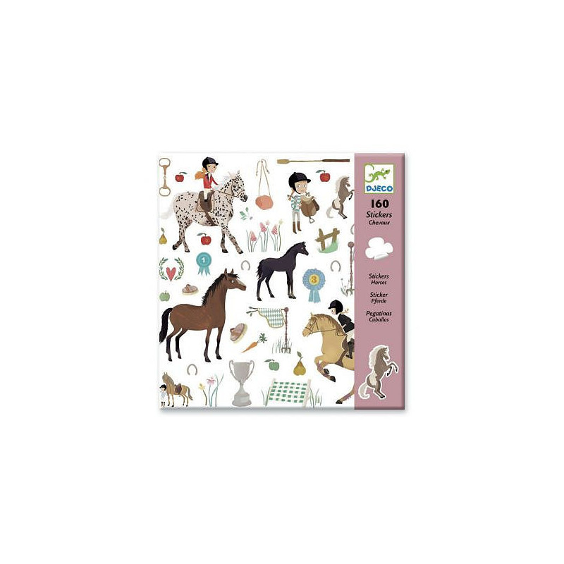 Djeco vous présente ses stickers "Chevaux" se présentant sous la forme de pochette comprenant 4 planches pour 160 stickers.