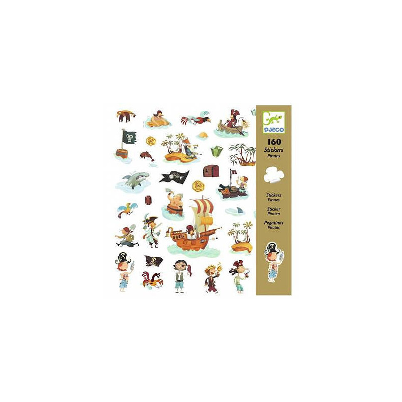 Djeco vous présente ses stickers "Pirates" se présentant sous la forme de pochette comprenant 4 planches pour 160 stickers.