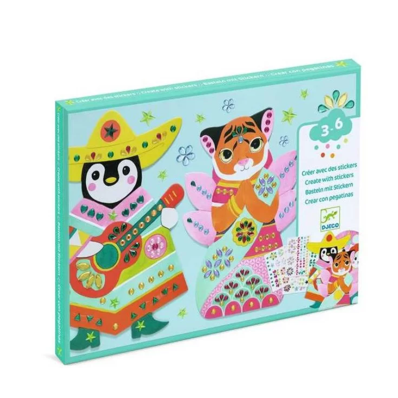 Découvrez la pochette Créer avec des stickers Brillants de Djeco, une activité créative pour les enfants de 3 à 6 ans. Une activité de collage pour décorer 4 animaux avec des pierres qui brillent!