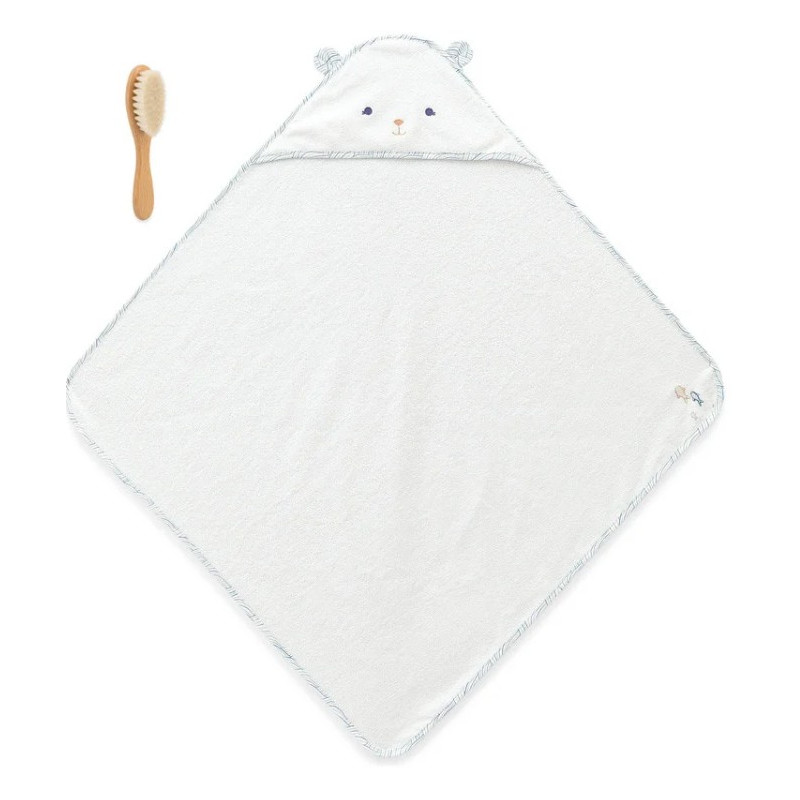 Parfaite pour garder bébé bien au chaud après le bain, la cape possède une adorable tête d'ours, qui va vous faire craquer à coup sûr ! De jolis poissons sont brodés sur l'envers de cette cape de bain et des vagues habillent la bordure : ces détails rappellent le calme des profondeurs marines, loin des vagues agitées, et invitent au repos et à la douceur. Une fois enveloppé dans ce cocon rassurant, bébé reste bien au chaud avant d'être habillé.