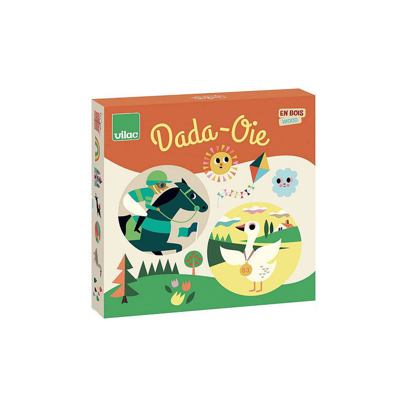 Découvrez le coffret de jeux dada oie illustré par Ingela P. Arrhenius de Vilac, un coffret en bois vintage et rétro comprenant un jeu de l'oie et un jeu des petits chevaux pour jouer à partir de 4 ans.