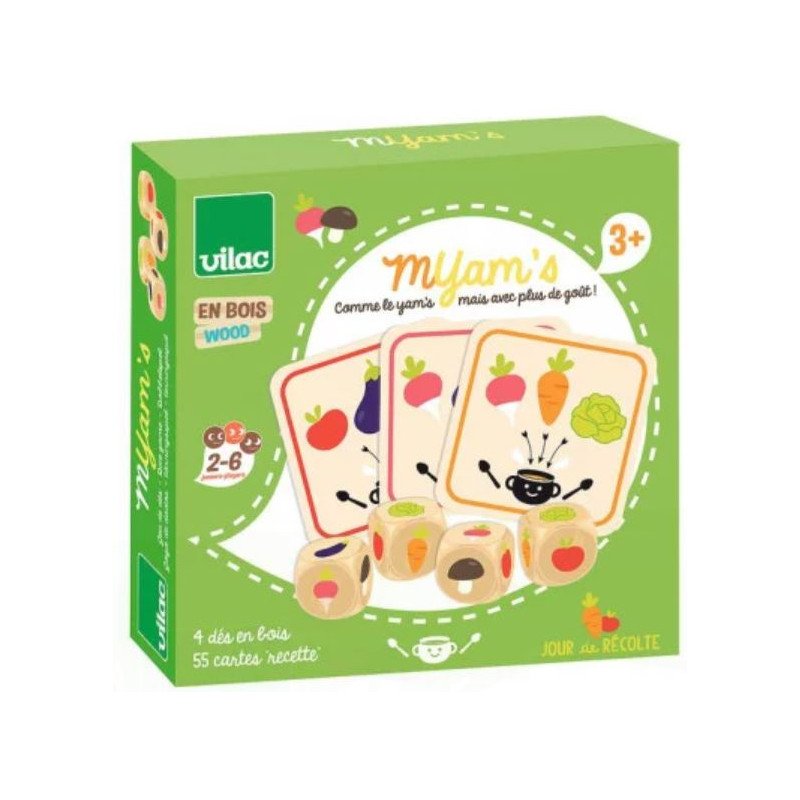 Découvrez le jeu Myam's de la collection Jour de récolte de Vilac, un jeu de yam's adapté aux plus jeunes dès 3 ans, un jeu de hasard en bois sur le thème du potager.