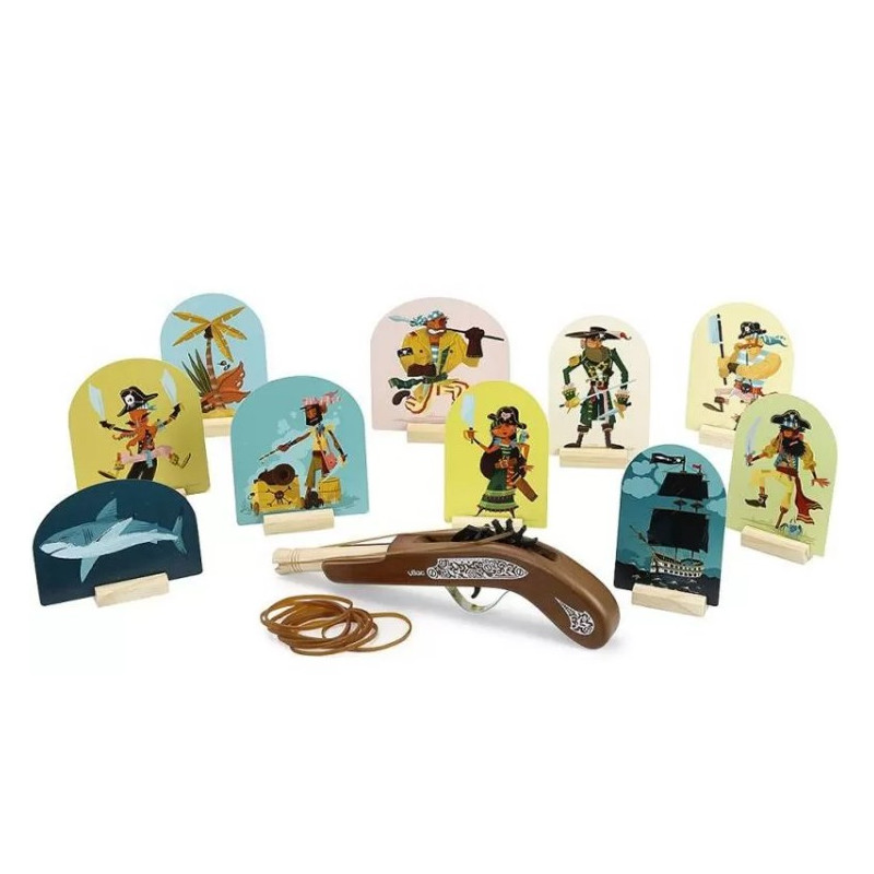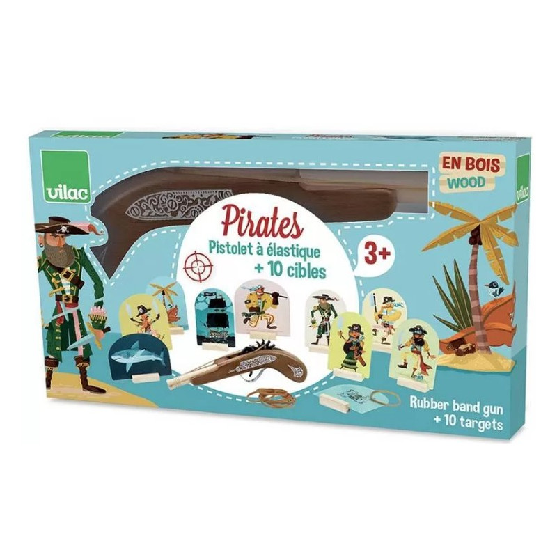 Avec le pistolet à élastiques de Vilac sur le thème des pirates, entraîne-toi pour développer adresse et précision car des bandits convoitent ton trésor!