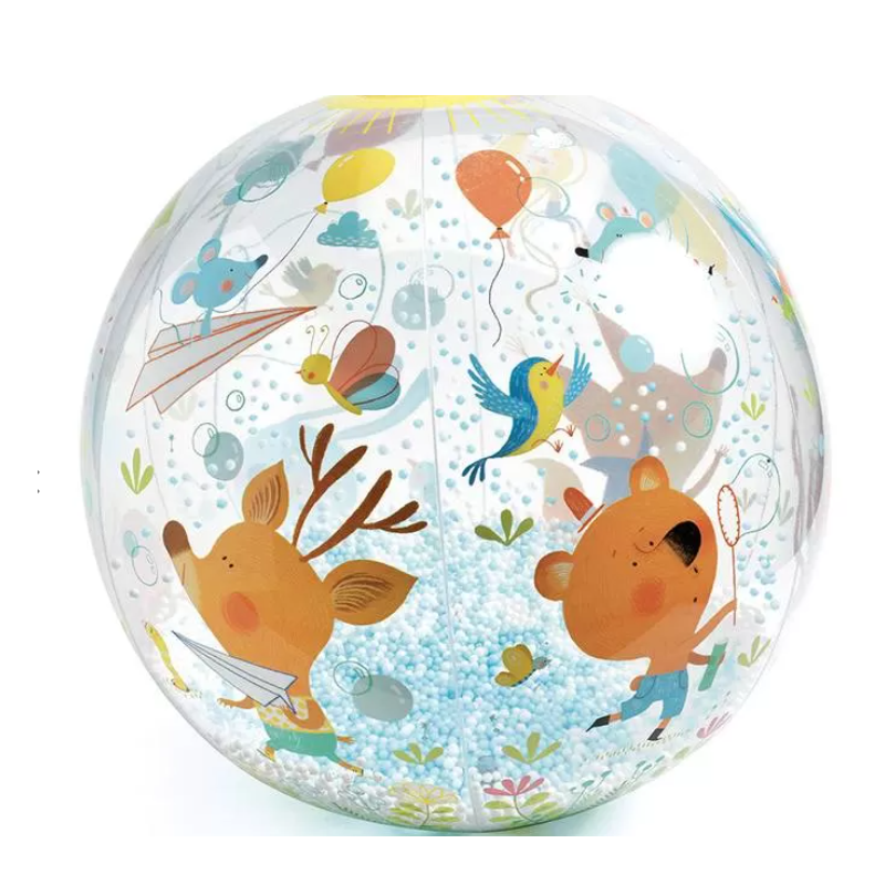 Découvrez le ballon gonflable Bubbles ball de Djeco, un ballon en PVC rempli de petites billes colorées. Un joli ballon illustré sur le thème des jeux d'eau et des bulles, pour amuser les enfants à partir de 3 ans.