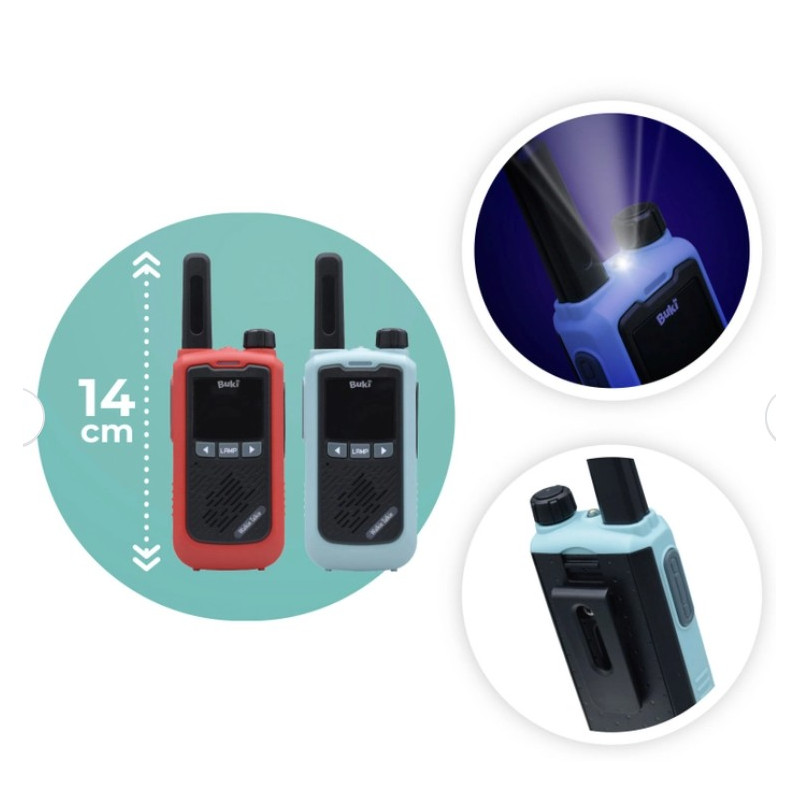 Avec une portée impressionnante de 5 km et 16 canaux disponibles, ces talkies-walkies Buki sont parfaits pour rester en contact lors de jeux en plein air, d’explorations ou de sorties en famille. Leur micro et haut-parleur améliorés assurent un son clair et net. Ils sont rechargeables grâce au chargeur double embout fourni.