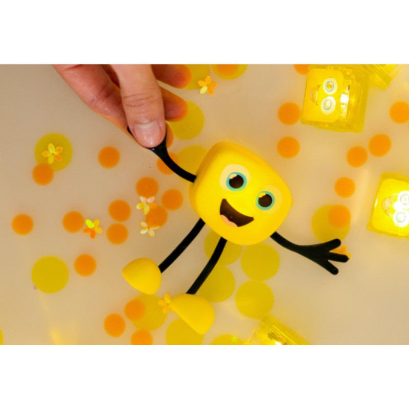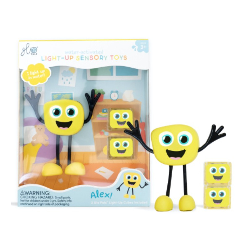 Découvrez le coffret Personnage jaune Alex de Glo Pals, un set de jouets de bain amusants et interactifs conçu pour divertir les enfants dès 3 ans. Il comprend un personnage jaune et deux cubes lumineux. Insérez un cube dans le dos d'Alex, plongez-le dans l'eau et laissez-vous émerveiller par son illumination!