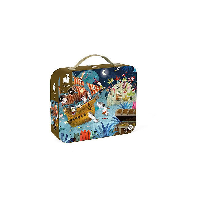 Découvrez le puzzle la chasse au trésor de Janod, un magnifique puzzle de 36 pièces en carton pour les enfants sur le thème des pirates à partir de 4 ans.