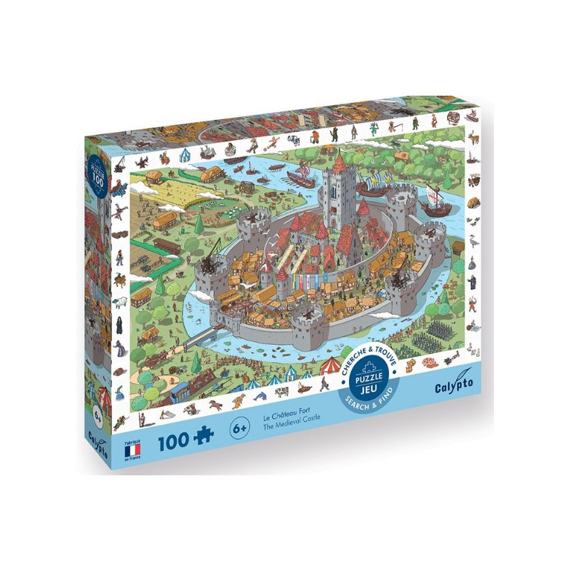 Ce puzzle "Cherche et trouve" sur le thème du "Château fort" est composé de 100 pièces + 58 pions. Une fois le puzzle réalisé, l'enfant pourra seul ou en famille s'amuser à retrouver les 58 illustrations des pions sur le puzzle.