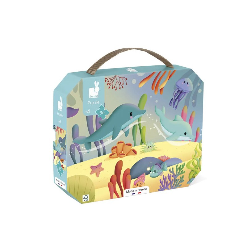 Venez découvrir les profondeurs de l´océan et les animaux qui s´y cachent ! Composé de 36 pièces, ce joli puzzle panoramique en carton sur le thème des animaux marins permettra à votre enfant de s´amuser à reconnaître les différents animaux aquatiques.