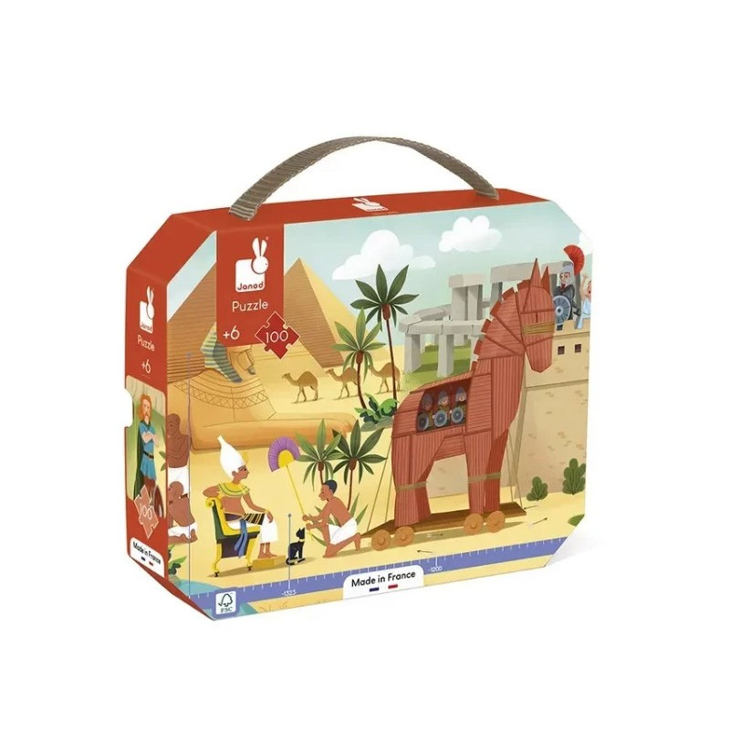 Découvrez le puzzle frise Mythologie et Antiquité de Janod, un magnifique puzzle de 100 pièces en carton pour les enfants à partir de 6 ans. Fabriqué en France, ce puzzle au format panoramique plonge les enfants dans les grandes époques de l’Histoire.