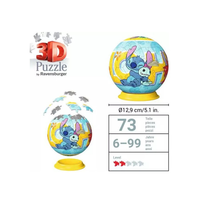 Un puzzle 3D rond aux couleurs de Stitch, facile à assembler grâce à ses 72 pièces numérotées. Il suffit de suivre l'ordre des numéros et le sens des flèches indiqués au verso des pièces de puzzle. Toutes les pièces s'emboitent parfaitement grâce à la technologie Easyclick. Une fois monté, le puzzle 3D reste bien.