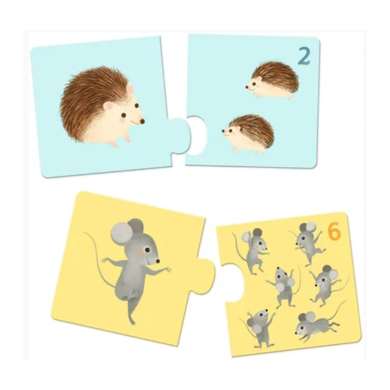 L'enfant va devoir recomposer chaque famille en associant l'animal adulte avec son ou ses petits. Un jeu rigolo pour réaliser 12 puzzles de 2 pièces. Un puzzle auto correctif, car seules les pièces correspondantes forment un puzzle parfait. De jolis puzzles éducatifs pour apprendre à reconnaitre les animaux et pour apprendre à compter.